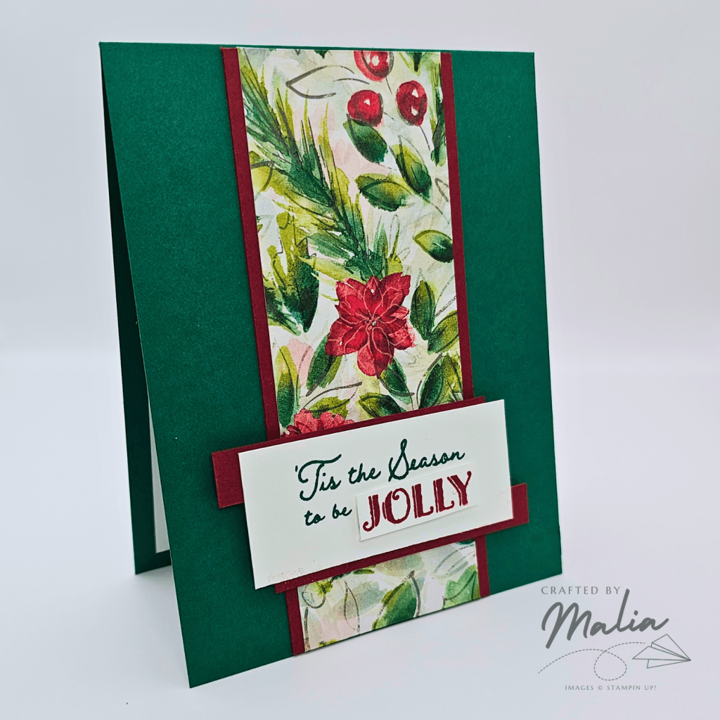 I’m really loving this Christmas Classics set. I wanted to make a simple card that showed off some of this lovely DSP and was a little out of the ordinary. I figured a top fold card was a great way to make this card stand out while still being easy to make.
