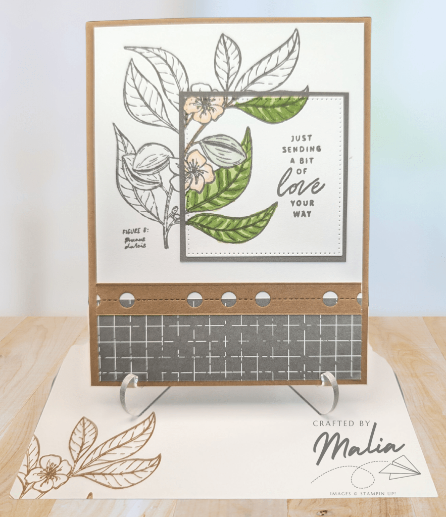 I was a bit unsure of how to color the spotlight portion, so I decided to look up the plant. Turns out it’s an almond tree! The flowers are so pretty and Stampin Blends make this part easy and fun.