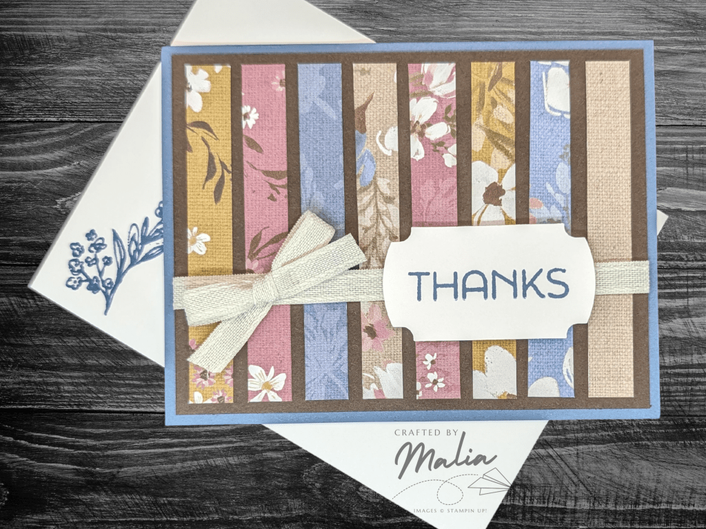 I enjoy scrap cards so much that sometimes I make scraps to use instead of finding scraps to use. There’s something so pleasing about the bars and straight lines and beautiful paper. It makes a simple technique stand out.
