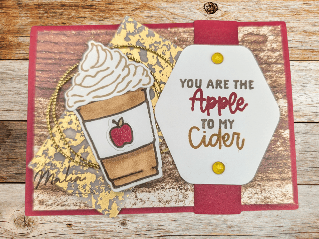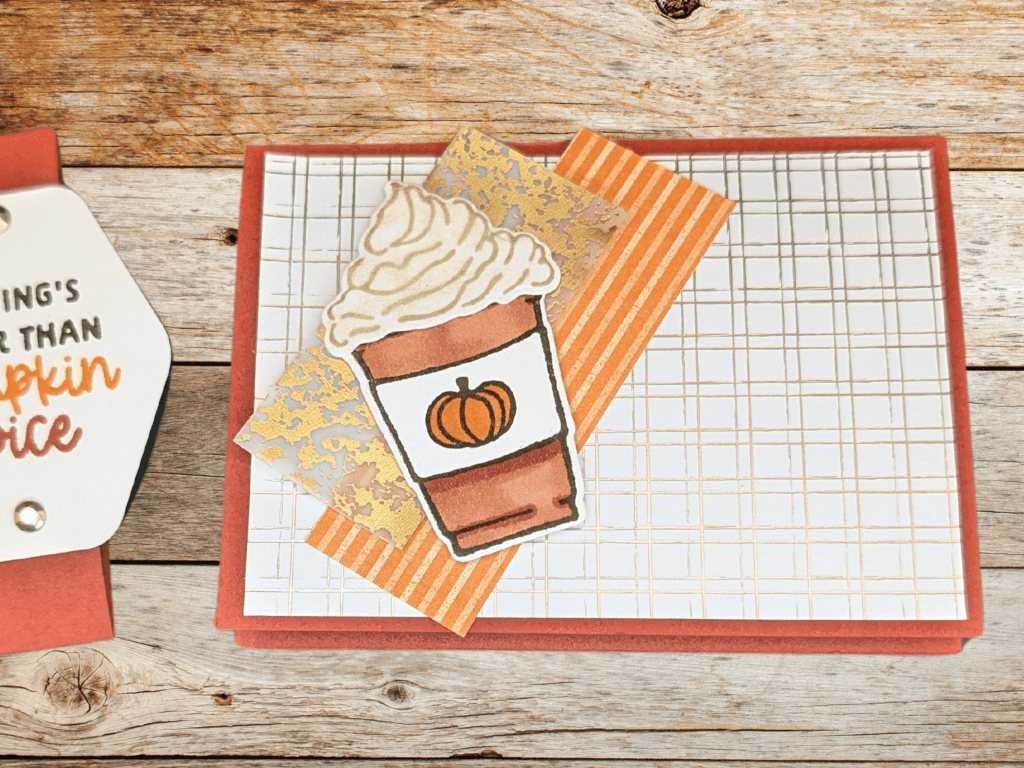 For the apple gift card holder, I was able to stamp the sentiment easily. It took four different stamps, but I could decide how to arrange them and line them up easily because the stamps are transparent. I imagine this would be really great for embossing parts of a sentiment. It’s certainly easier than masking. I did mask the first part of the pumpkin gift card holder’s sentiment, but that wasn’t too bad.