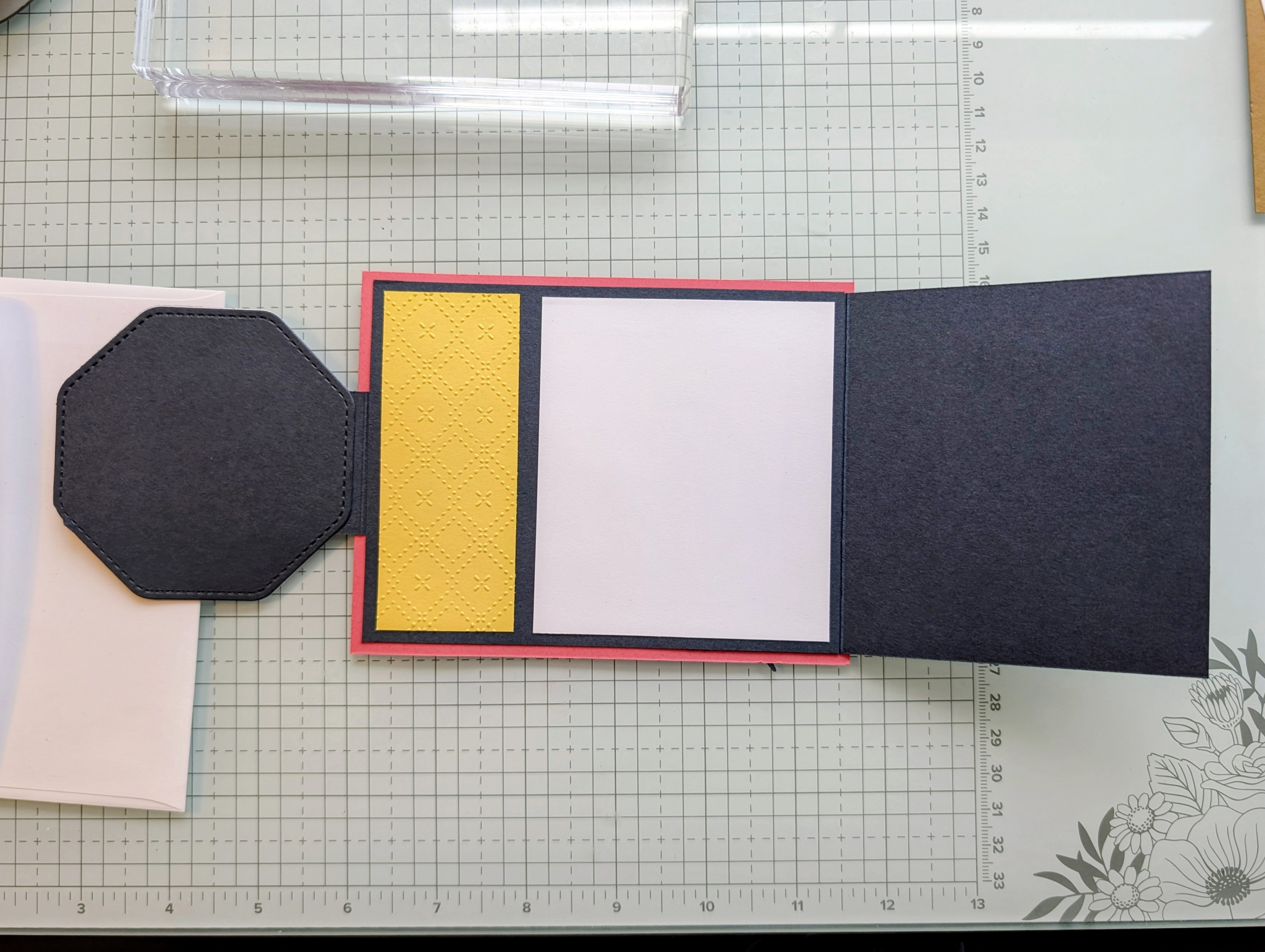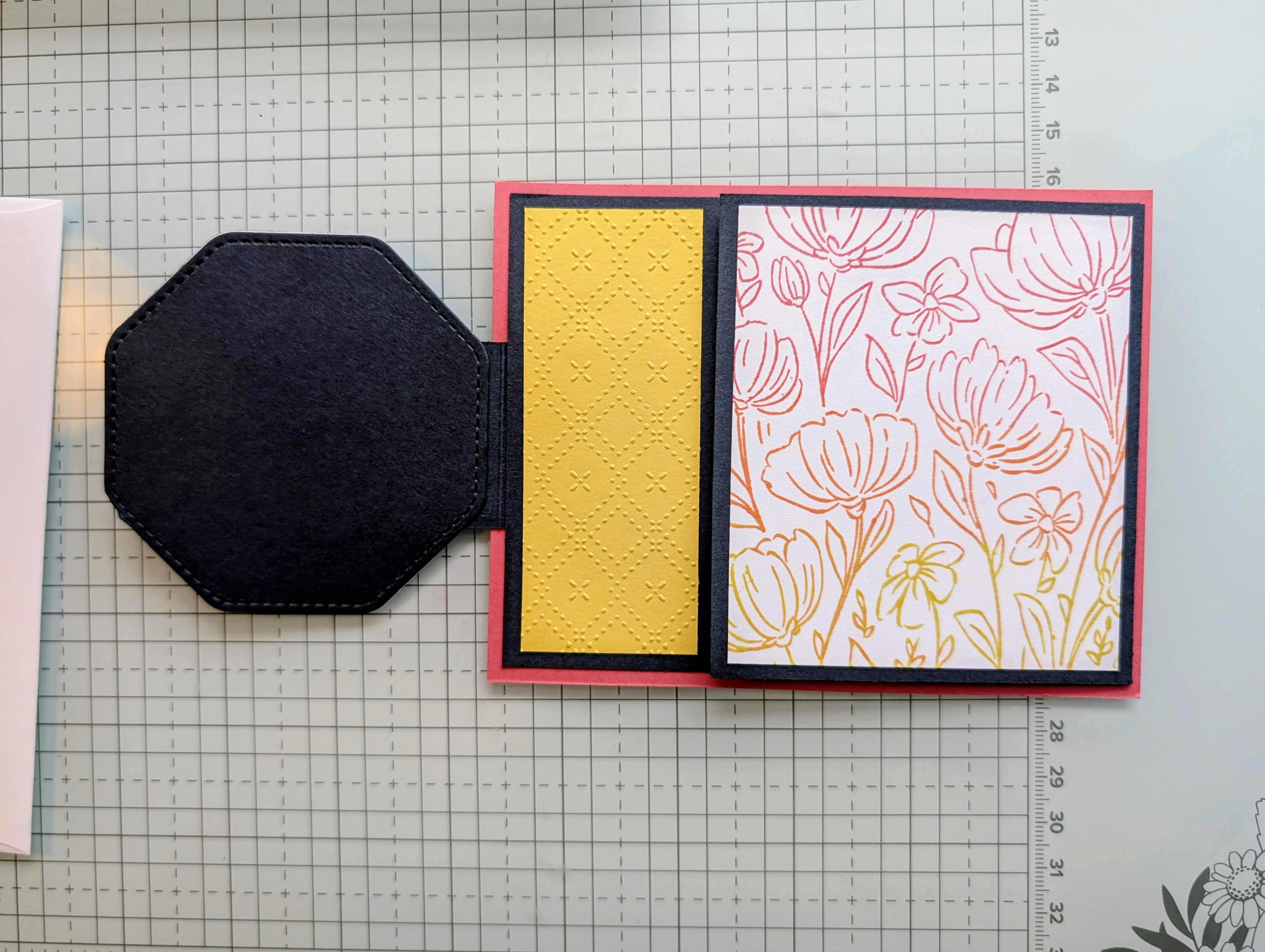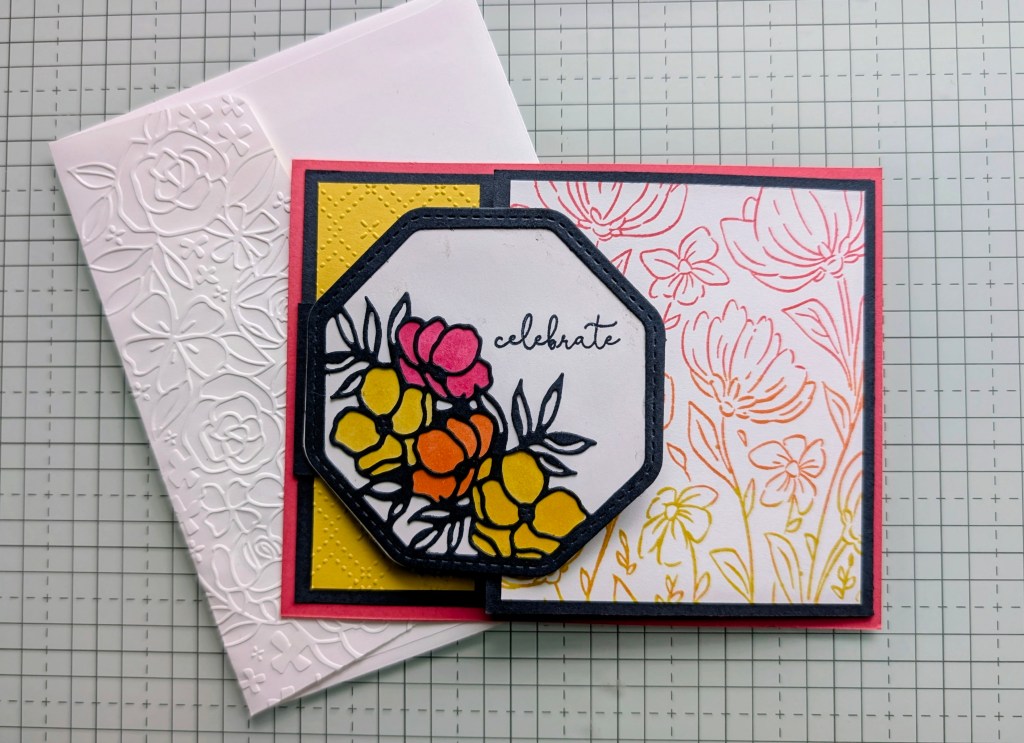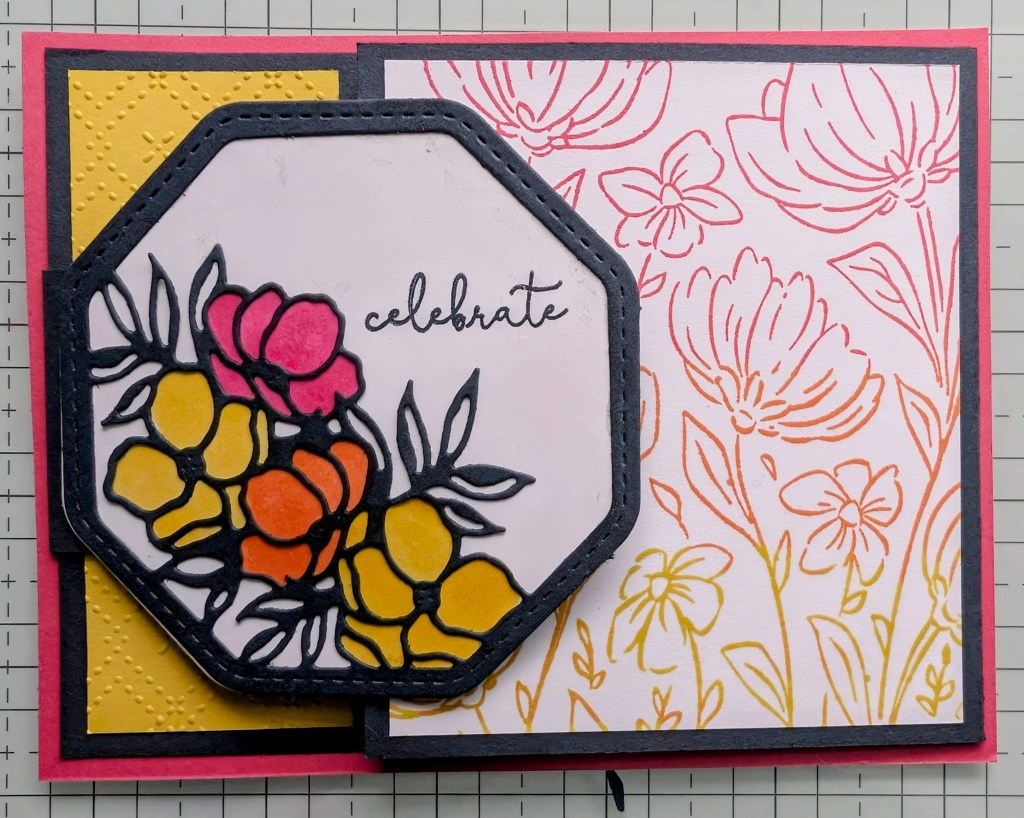 My card was inspired by this card! I love the flowers and the layout, but of course I made it more complicated by turning it into a fun fold.